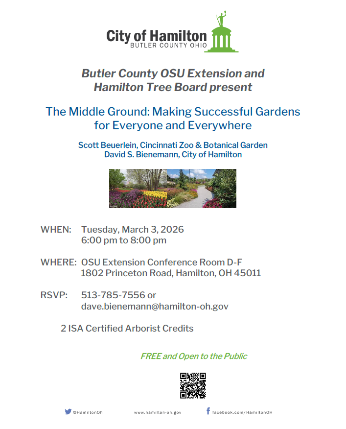 In partnership with the Ohio State University Extension Office and Hamilton's Tree Advisory Board to host quarterly educational seminars free to the public. These engaging presentations focus on useful tree information and topics, from planting and tree species to diseases and pests. Educational events for Hamilton elementary students are also hosted throughout the summer months. As events are confirmed for the fall and spring seminars, that information is posted to the City of Hamilton's Urban Forestry website.
